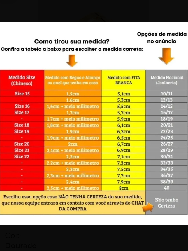Medidas por Anéis c/ etiqueta branca ou fita.